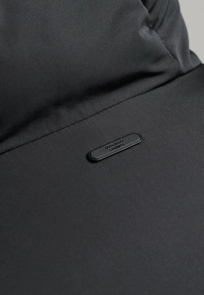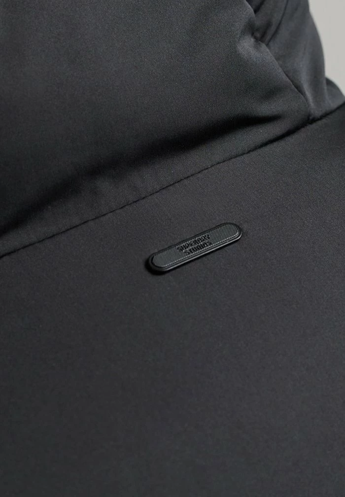 - Collar: Chin guard, high-fastening, lined