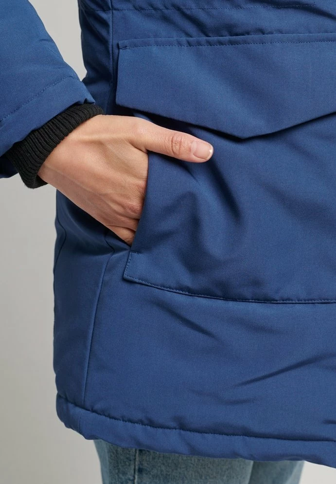 - Hood detail: Lined, removable faux fur collar