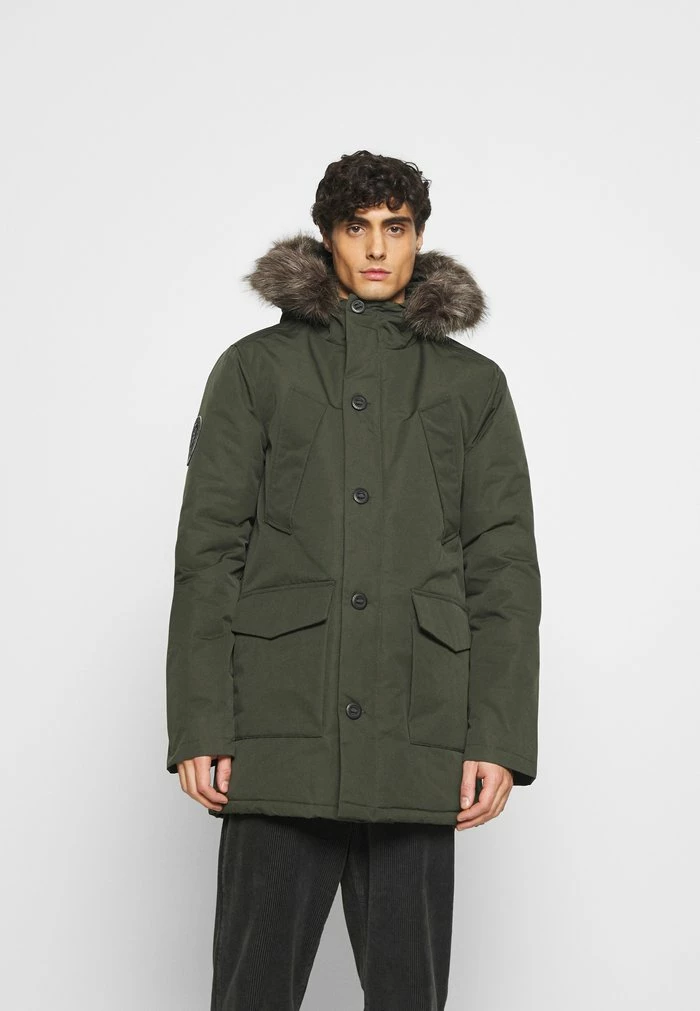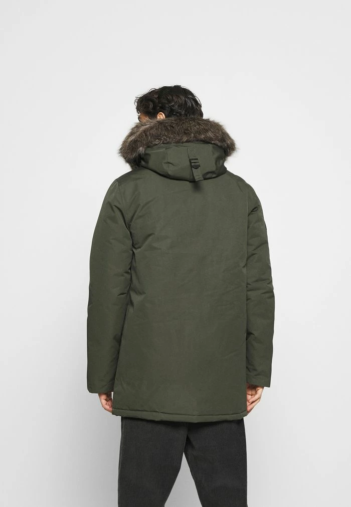 - Hood detail: Drawstring, lined, removable faux fur collar