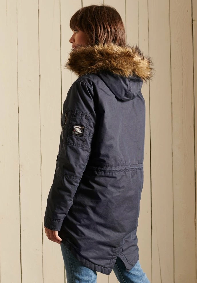 - Hood detail: Drawstring, removable faux fur collar