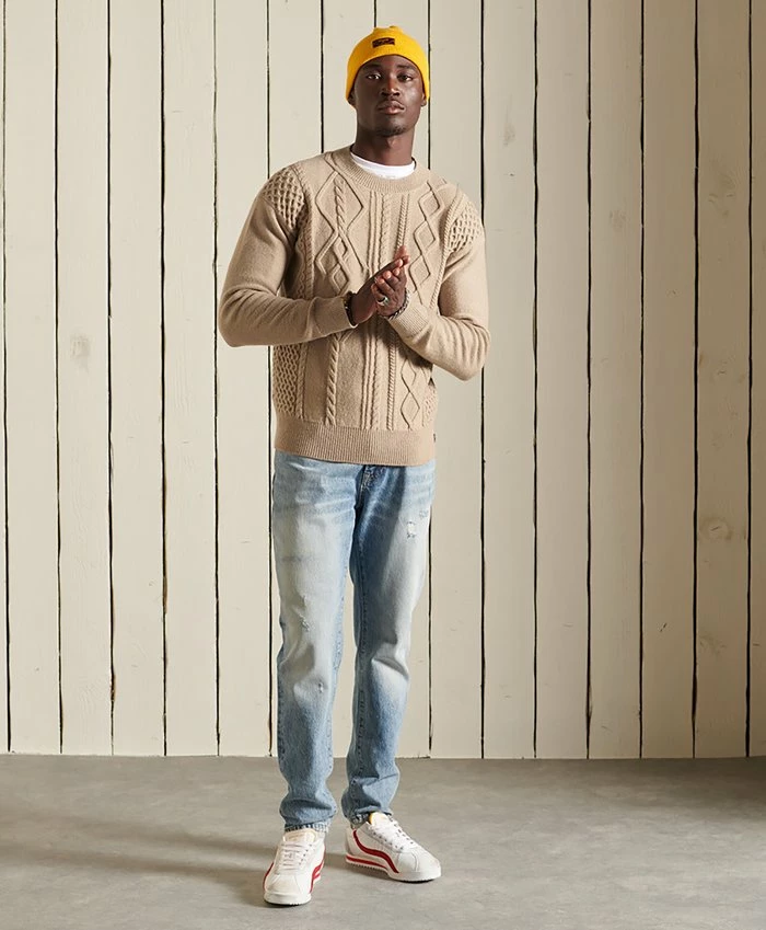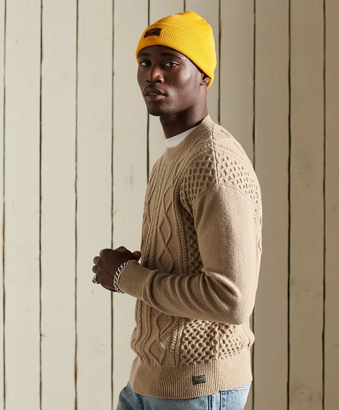 - Details: Cable knit, elasticated waist