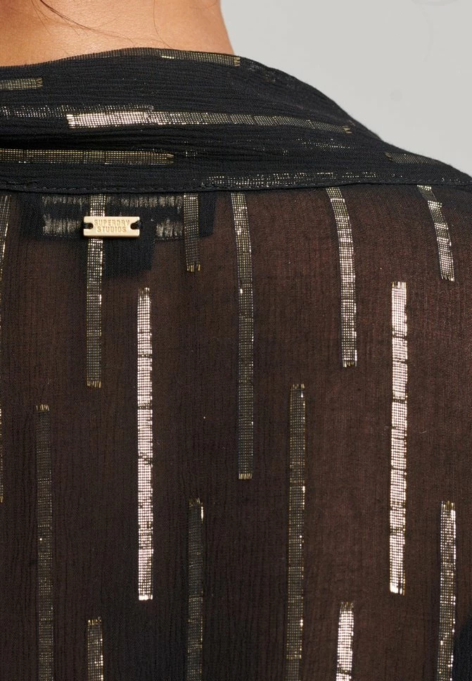 - Neckline: Low-cut v-neck