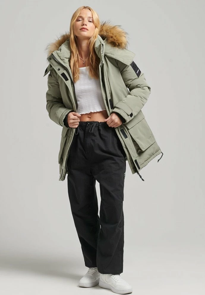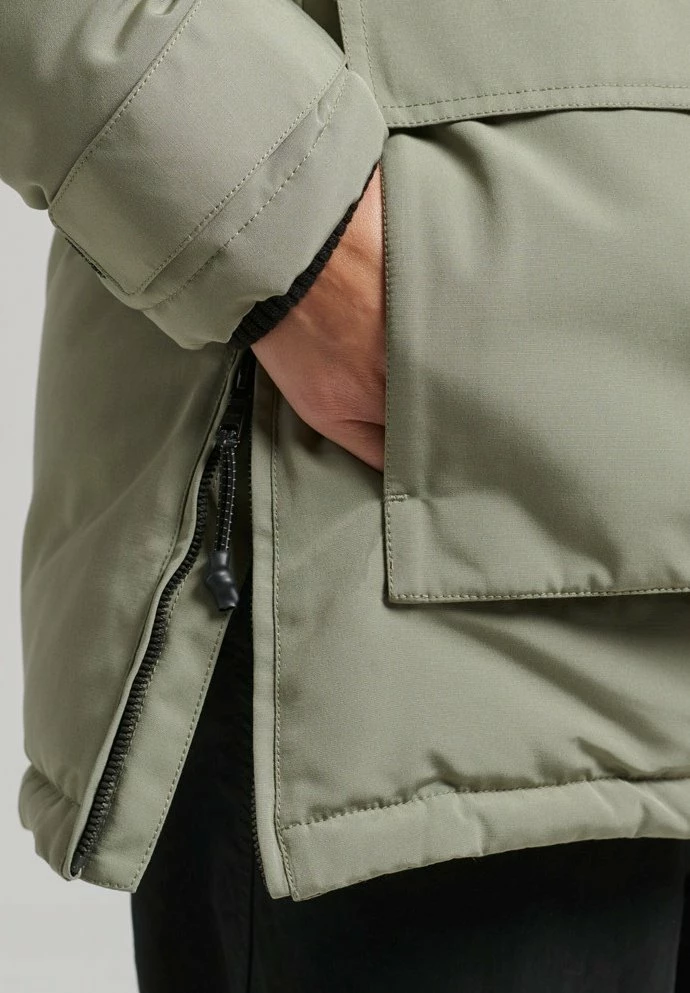 - Hood detail: Lined, removable, removable faux fur collar